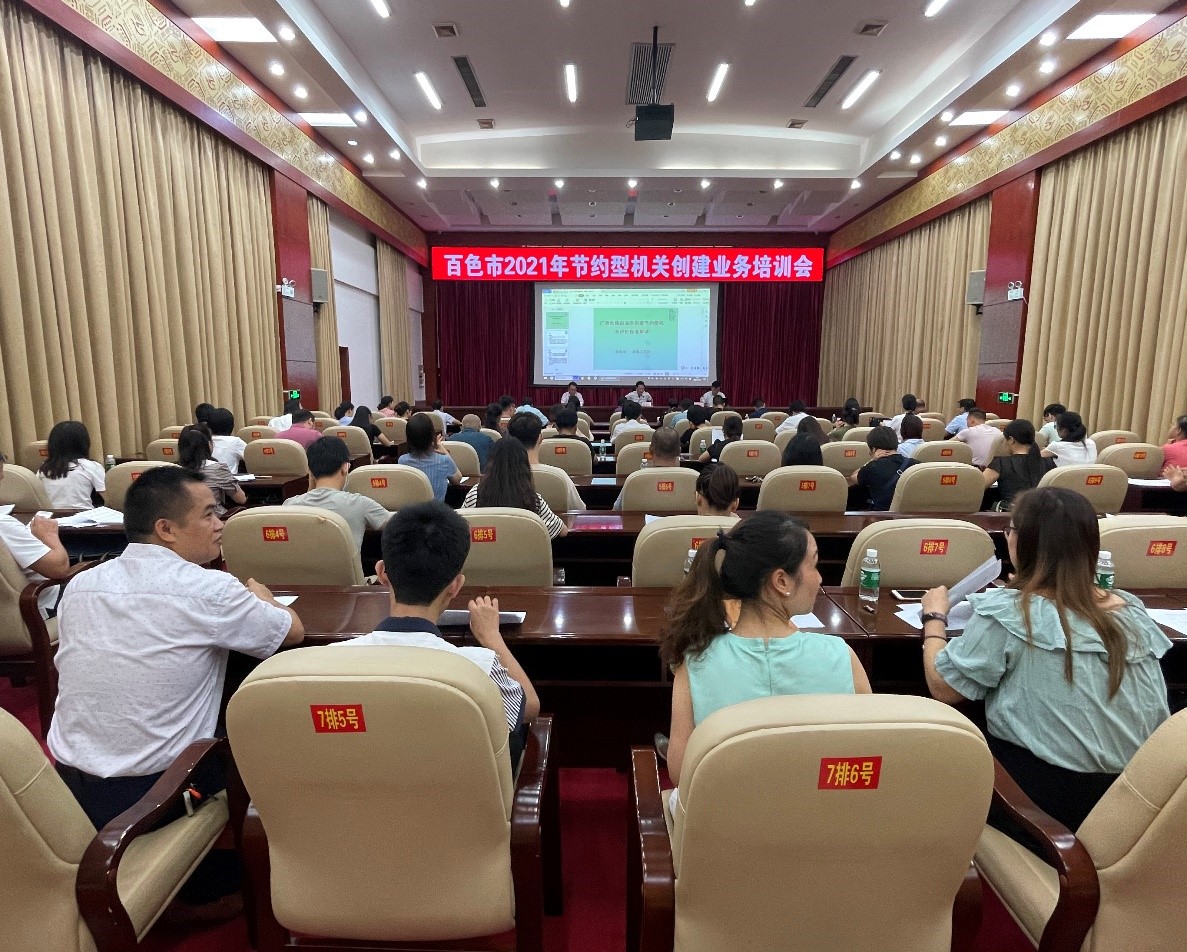 百色市机关后勤服务中心邀请,7月7日上午,我公司总经理、高级工程师佘乾仲参加了百色市2021年节约型机关创建业务培训会,并对节约型机关创建标准进行了详细解读,围绕六个方面评价标准开展广泛交流研讨,并详细解答各创建单位在节约型机关建设过程中遇到的困难和问题,为进一步推动百色市节约型机关创建打下良好基础。